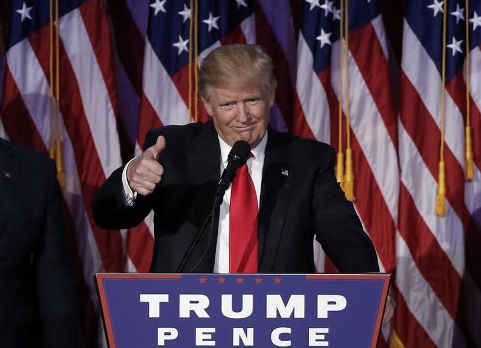 IMAGE: Donald Trump greets supporters during his election night rally in Manhattan. REUTERS/Mike Segar
