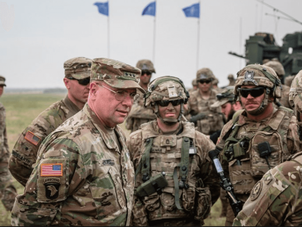 IMAGE: Lieutenant General Ben Hodges (L), commanding general of the US Army in Europe at January 2018 NATO exercises in Poland. AFP Photo