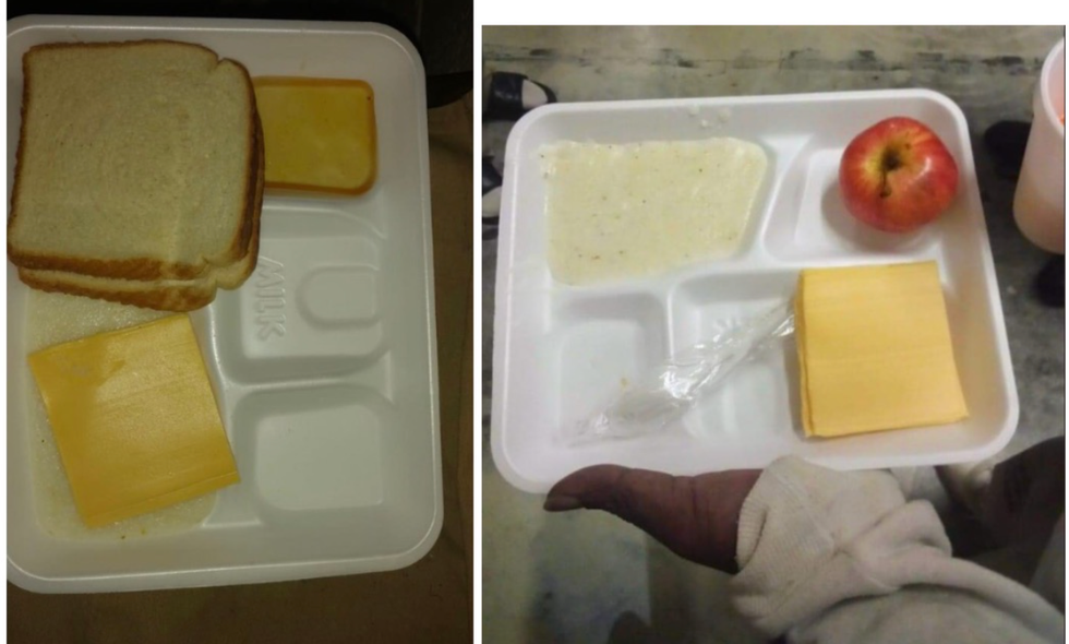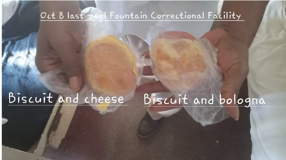 Another meal at Fountain Correctional Facility in Atmore, Alabama consisted of two biscuits, one slice of cheese and one slice of bologna.