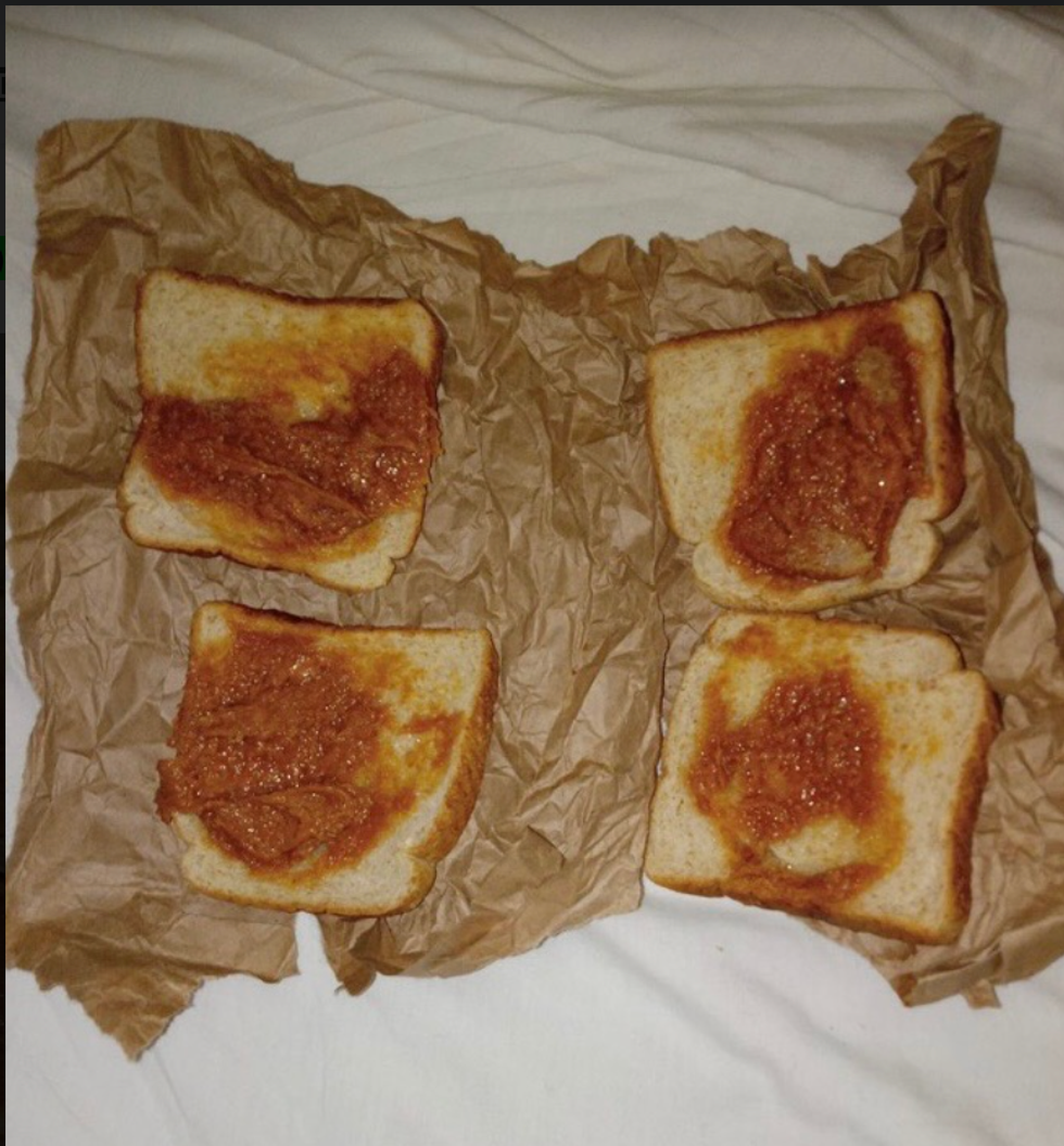According to firsthand accounts, some meals were simply four pieces of bread with an unknown condiment on them.