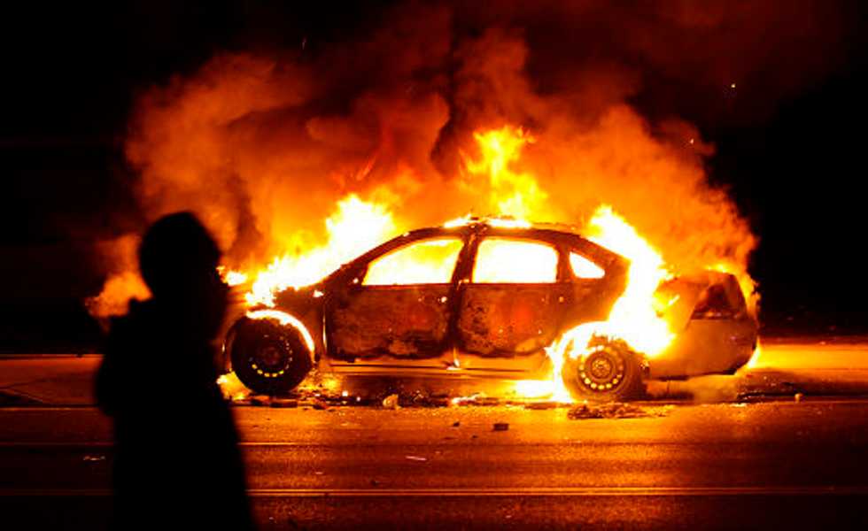 At least two St. Louis County police cars were set on fire along with at least six businesses, including a Walgreens and a Little Caesar’s pizza, both on North Florissant Road in Ferguson. An elderly man was run over when carjacked outside a pizzeria.