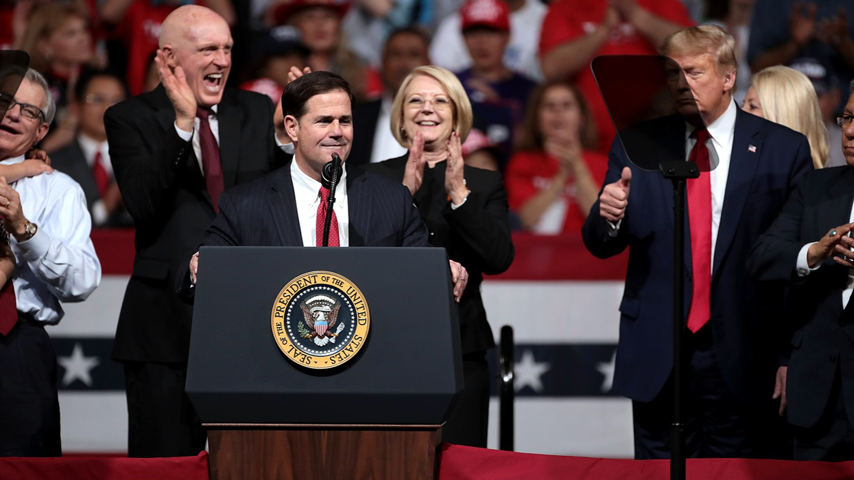 State Rep. Russell Bowers, Gov. Doug Ducey, Senate President Karen Fann and President Donald Trump at 2020 campaign rally in Phoenix, Arizona.