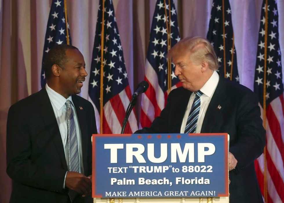 Photo: Donald Trump shakes hands with former Republican presidential candidate Ben Carson after receiving Carson’s endorsement at a campaign event in Palm Beach, Florida March 11, 2016. REUTERS/Carlo Allegri