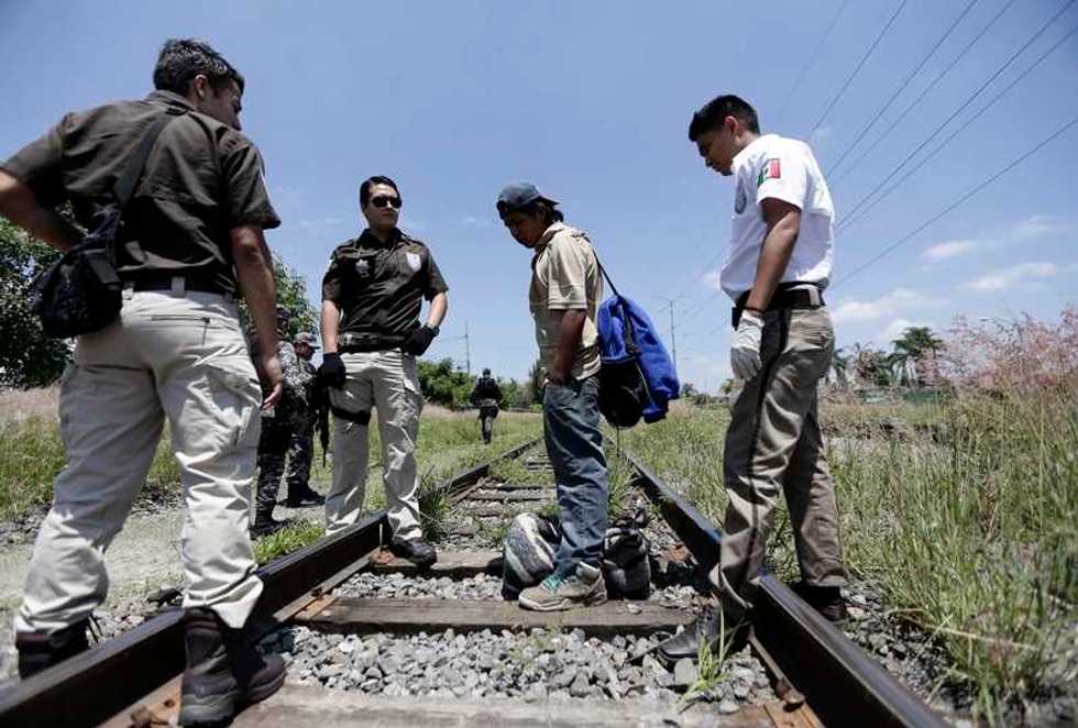 IMAGE: Mexican immigration officers talk with a man whom they suspect to be an illegal immigrant during a search operation in Zapopan near Guadalajara, Mexico. REUTERS/Alejandro Acosta/File Photo
