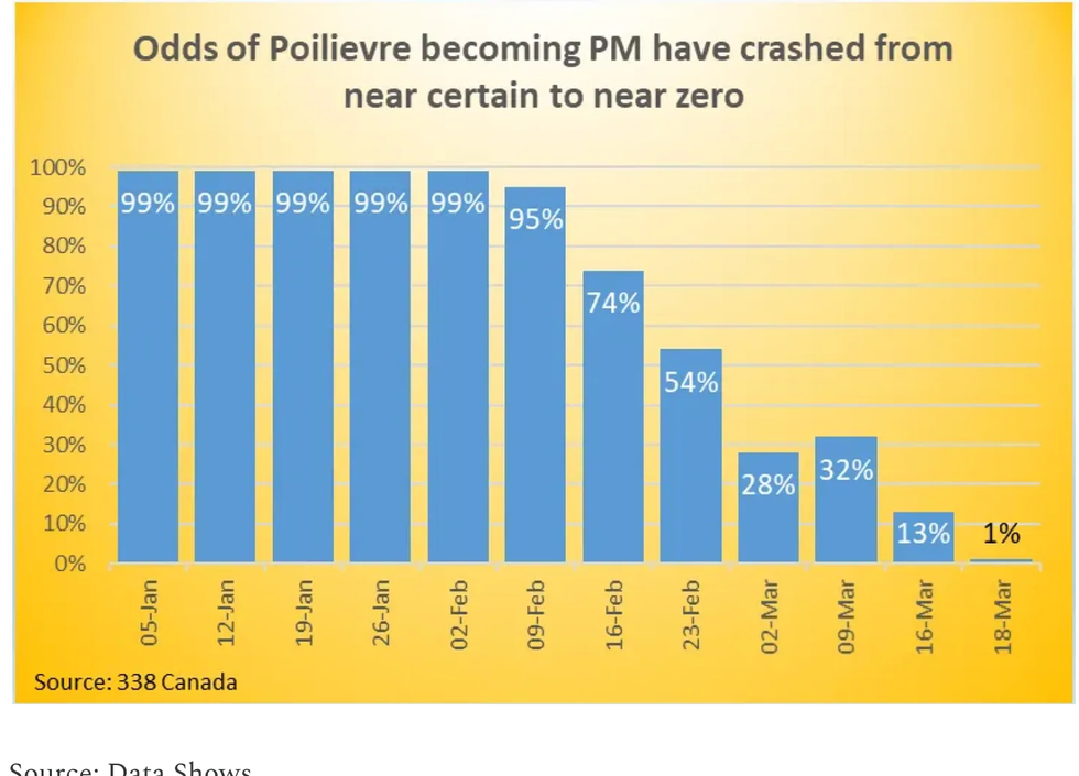 What he actually did was to rally Canadians against MAGA. Just two months ago Canada’s governing Liberals seemed set for a historic collapse, with Conservative leader Pierre Poilievre the all-but-inevitable next prime minister. Now, if the polls are to be believed, Poilievre — who has been trying to escape his image as a Canadian Trump, but apparently not successfully — is effectively out of the running: