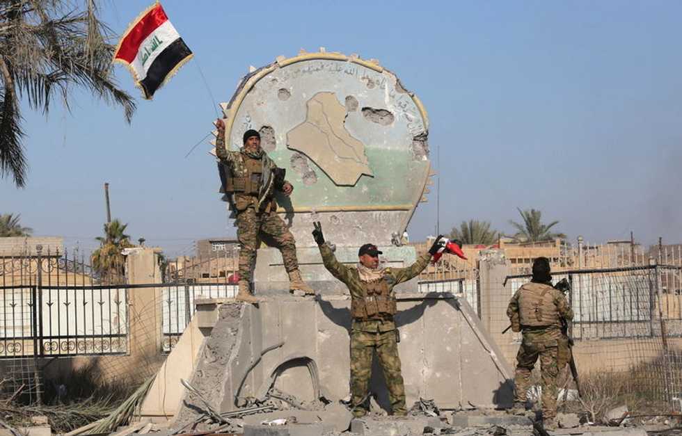 Photo: A member of the Iraqi security forces holds an Iraqi flag at a government complex in the city of Ramadi, December 28, 2015. REUTERS/Stringer