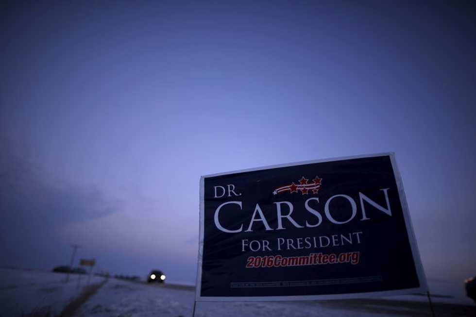 Photo: A campaign sign for Ben Carson is seen on the side of the road in Clear Lake, Iowa, January 16, 2016. REUTERS/Jim Young