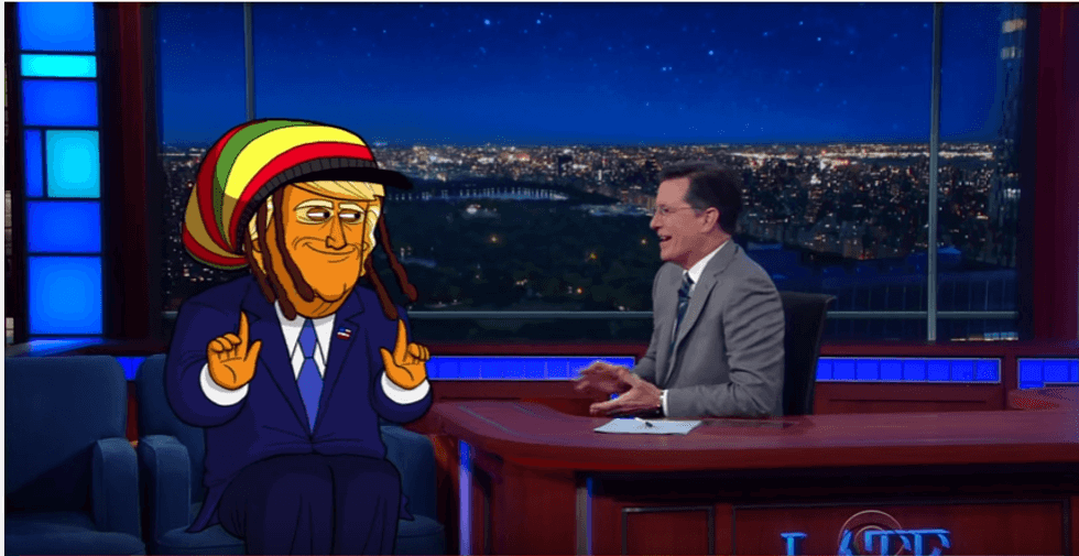 Cartoon Donald Trump made an appearance on The Late Show with Stephen Colbert on Thursday night, to explain his plan to win over Bernie Sanders supporters in the general election.