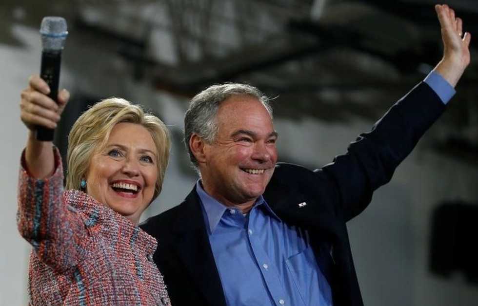 Photo: Democratic U.S. presidential candidate Hillary Clinton and U.S. Senator Tim Kaine (D-VA) wave to the crowd during a campaign rally at Ernst Community Cultural Center in Annandale, Virginia, U.S., July 14, 2016. REUTERS/Carlos Barria