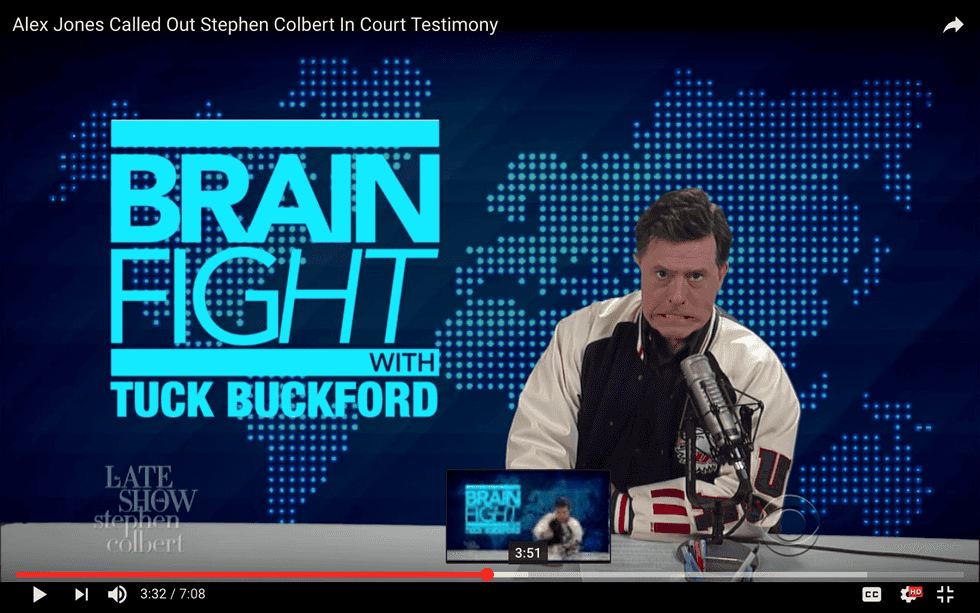 Alex Jones, conspiratorial eminence of radio and Internet fame, already may regret calling out Stephen Colbert at his child custody trial in Texas — because of course the Late Show host had to respond with what might be considered overkill in any other circumstances.