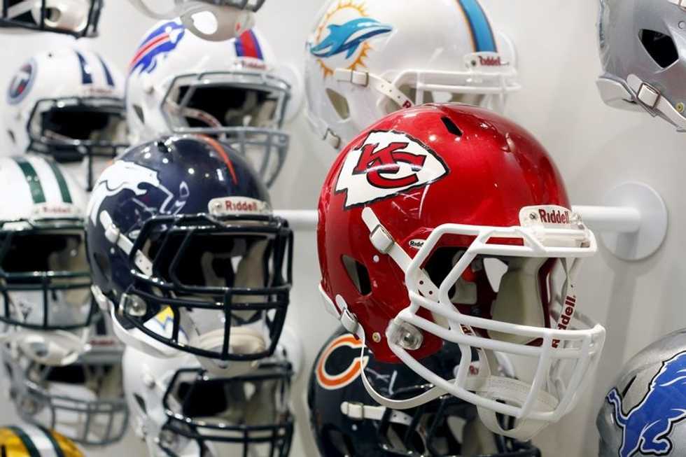 NFL team helmets are displayed at the NFL Headquarters in New York December 3, 2015. REUTERS/Brendan McDermid