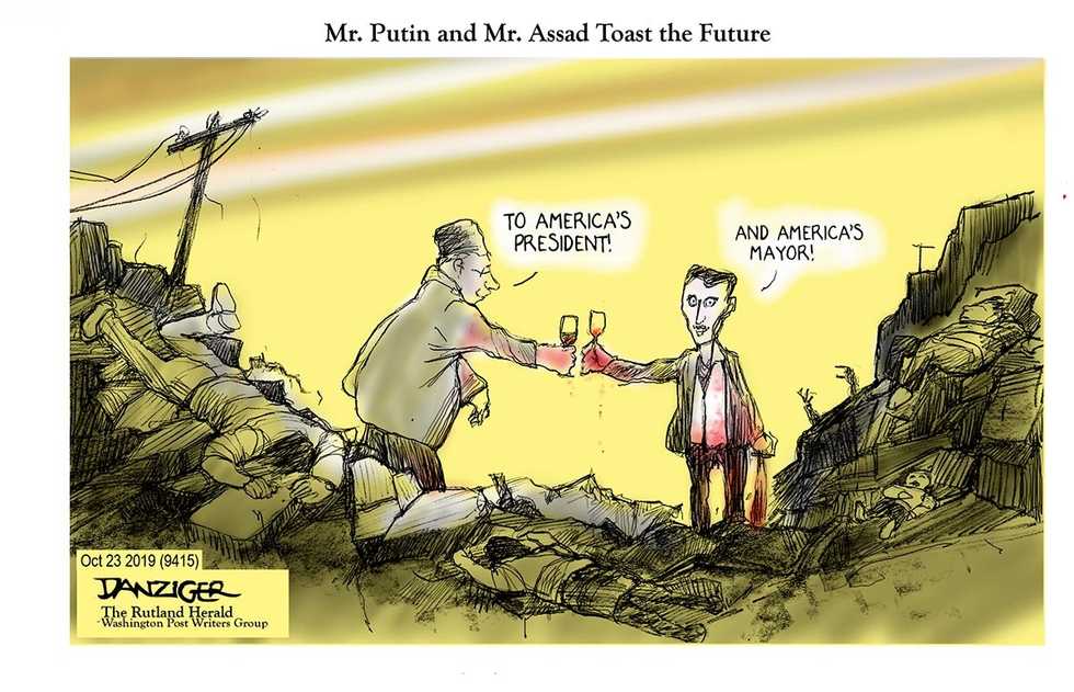 Jeff Danziger lives in New York City. He is represented by CWS Syndicate and the Washington Post Writers Group. He is the recipient of the Herblock Prize and the Thomas Nast (Landau) Prize. He served in the US Army in Vietnam and was awarded the Bronze Star and the Air Medal. He has published eleven books of cartoons and one novel. Visit him at DanzigerCartoons.com.