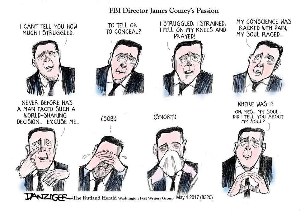 Jeff Danziger’s award-winning drawings are published by more than 600 newspapers and websites. He has been a cartoonist for the Rutland Herald, the New York Daily News and the Christian Science Monitor; his work has appeared in newspapers from theWall Street Journal to Le Monde and Izvestia. Represented by the Washington Post Writers Group, he is a recipient of the Herblock Prize and the Thomas Nast (Landau) Prize. He served in the US Army as a linguist and intelligence officer in Vietnam, where he was awarded the Bronze Star and the Air Medal. Danziger has published ten books of cartoons and a novel about the Vietnam War. He was born in New York City, and now lives in Manhattan and Vermont. A video of the artist at work can be viewed here.