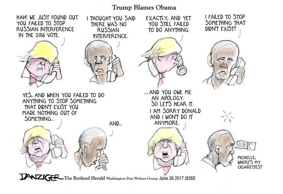 Jeff Danziger’s award-winning drawings are published by more than 600 newspapers and websites. He has been a cartoonist for the Rutland Herald, the New York Daily News and the Christian Science Monitor; his work has appeared in newspapers from theWall Street Journal to Le Monde and Izvestia. Represented by the Washington Post Writers Group, he is a recipient of the Herblock Prize and the Thomas Nast (Landau) Prize. He served in the US Army as a linguist and intelligence officer in Vietnam, where he was awarded the Bronze Star and the Air Medal. Danziger has published ten books of cartoons and a novel about the Vietnam War. He was born in New York City, and now lives in Manhattan and Vermont. A video of the artist at work can be viewed here.
