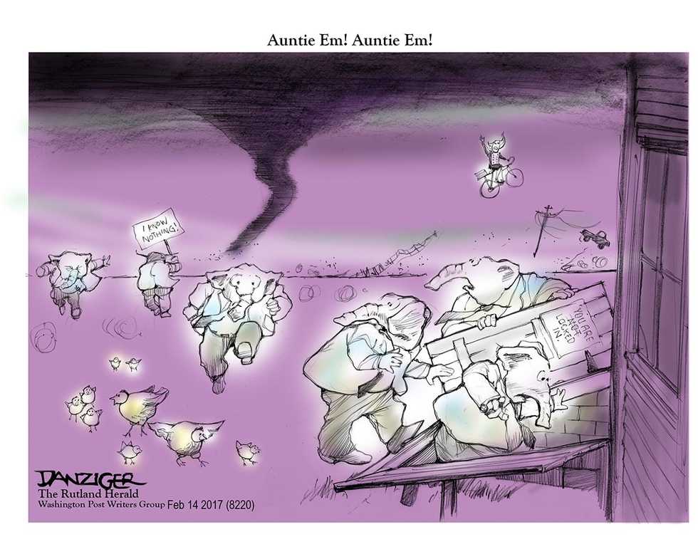 Jeff Danziger’s award-winning drawings are published by more than 600 newspapers and websites. He has been a cartoonist for the Rutland Herald, the New York Daily News and the Christian Science Monitor; his work has appeared in newspapers from the Wall Street Journal to Le Monde and Izvestia. Represented the Washington Post Writers Group, he is a recipient of the Herblock Prize and the Thomas Nast (Landau) Prize. He served in the US Army as a linguist and intelligence officer in Vietnam, where he was awarded the Bronze Star and the Air Medal. Danziger has published ten books of cartoons and a novel about the Vietnam War. He was born in New York City, and now lives in Manhattan and Vermont. A video of the artist at work can be viewed here.