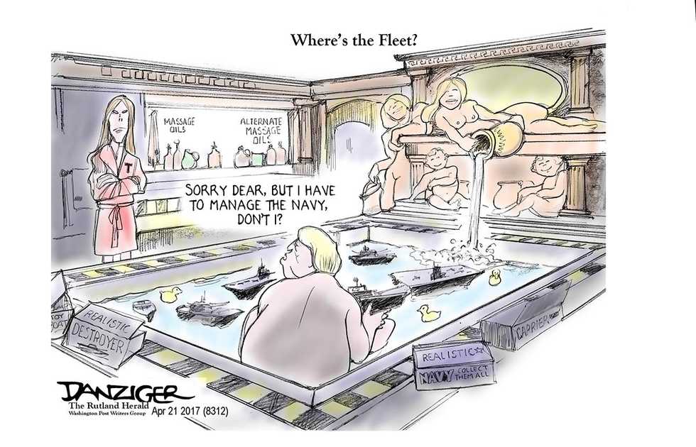 Jeff Danziger’s award-winning drawings are published by more than 600 newspapers and websites. He has been a cartoonist for the Rutland Herald, the New York Daily News and the Christian Science Monitor; his work has appeared in newspapers from theWall Street Journal to Le Monde and Izvestia. Represented by the Washington Post Writers Group, he is a recipient of the Herblock Prize and the Thomas Nast (Landau) Prize. He served in the US Army as a linguist and intelligence officer in Vietnam, where he was awarded the Bronze Star and the Air Medal. Danziger has published ten books of cartoons and a novel about the Vietnam War. He was born in New York City, and now lives in Manhattan and Vermont. A video of the artist at work can be viewed here.