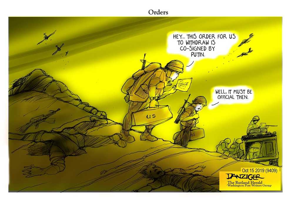 Jeff Danziger lives in New York City. He is represented by CWS Syndicate and the Washington Post Writers Group. He is the recipient of the Herblock Prize and the Thomas Nast (Landau) Prize. He served in the US Army in Vietnam and was awarded the Bronze Star and the Air Medal. He has published eleven books of cartoons and one novel. Visit him at DanzigerCartoons.com.