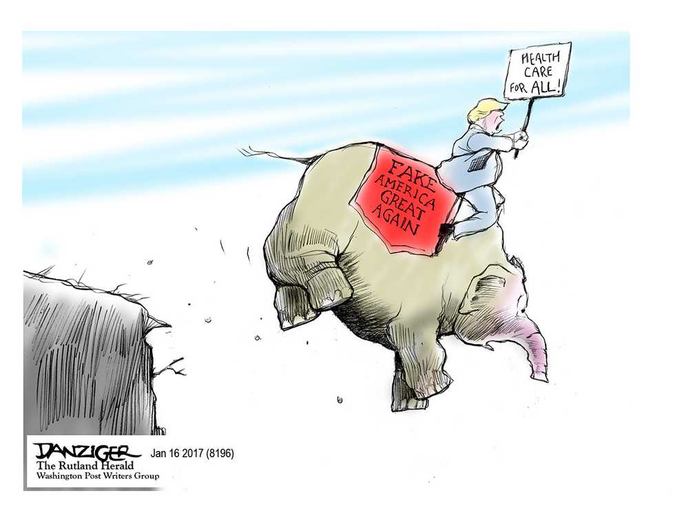 Jeff Danziger’s award-winning drawings, syndicated by the Washington Post Writers Group, are published by more than 600 newspapers and websites. He has been a cartoonist for the Rutland Herald, the New York Daily News and the Christian Science Monitor; his work has appeared in newspapers from the Wall Street Journal to Le Monde and Izvestia. Danziger has published ten books of cartoons and a novel about the Vietnam War. He served in Vietnam as a linguist and intelligence officer, earning a Bronze Star and the Air Medal. Born in New York City, he now lives in Manhattan and Vermont. A video of the artist at work can be viewed here.