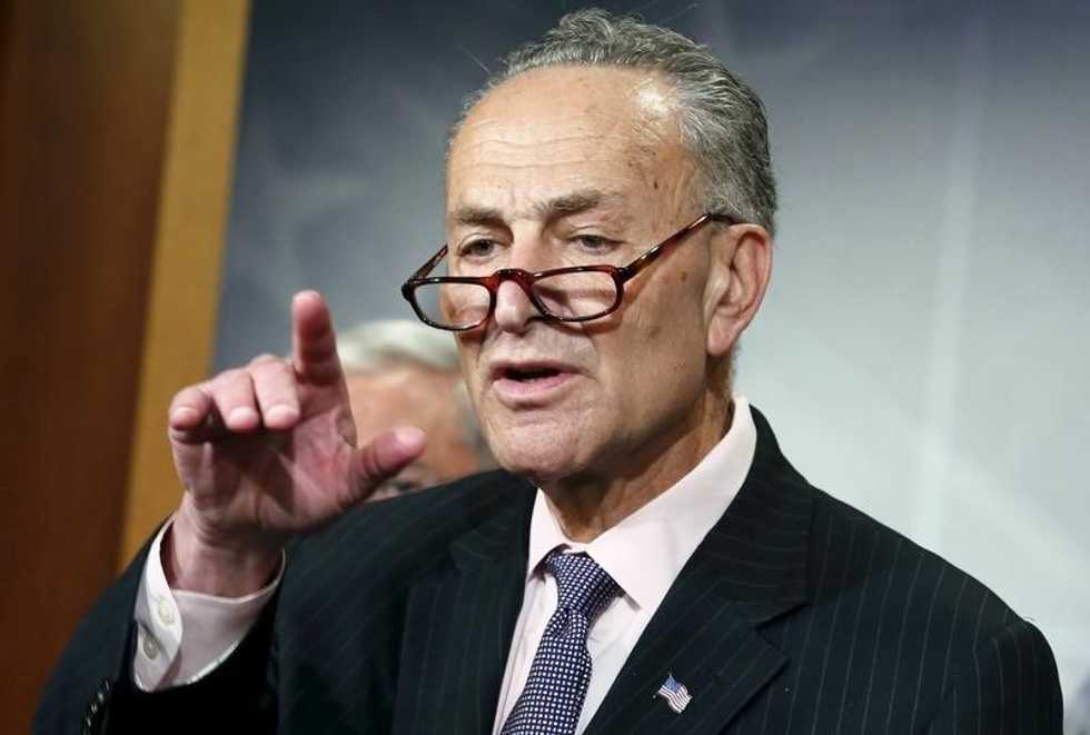 IMAGE: Sen. Chuck Schumer (D-NY) gestures at a news conference on Amtrak funding on Capitol Hill in Washington May 21, 2015. REUTERS/Yuri Gripas