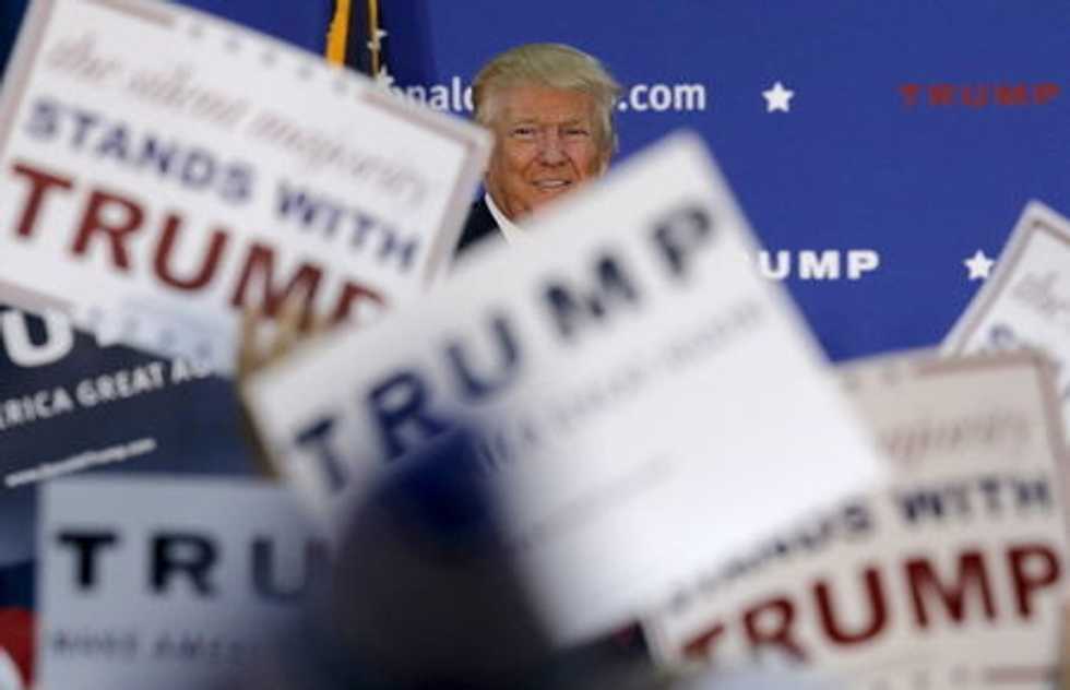 Republican presidential candidate Donald Trump takes the stage at a campaign rally in Waterville Valley, New Hampshire December 1, 2015. REUTERS/Brian Snyder