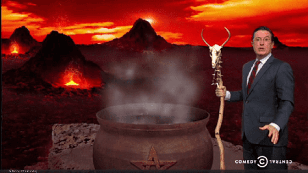 Click above to see Colbert cover the midterms from his “Mountain of Midterm Madness” — then share this video!