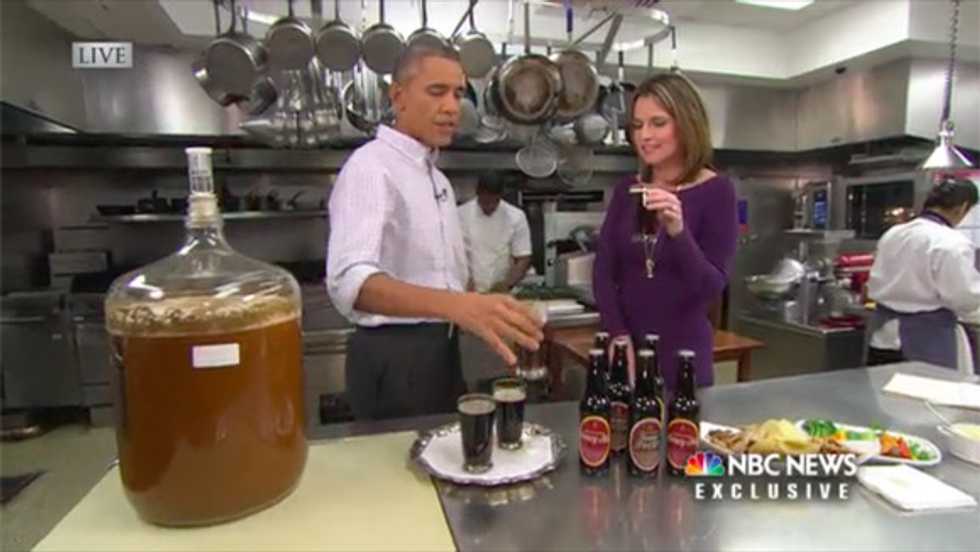 As part of this year’s Super Bowl festivities, President Obama gave an interview right from the White House kitchen to discuss the game and “Deflate-gate,” plus more serious issues on Capitol Hill. And he also showed off a special treat: The White House’s own signature beer.