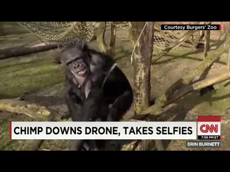 A female chimpanzee at a Dutch zoo has become the latest to challenge the mass surveillance state — after a TV crew sent a flying drone camera into her habitat.