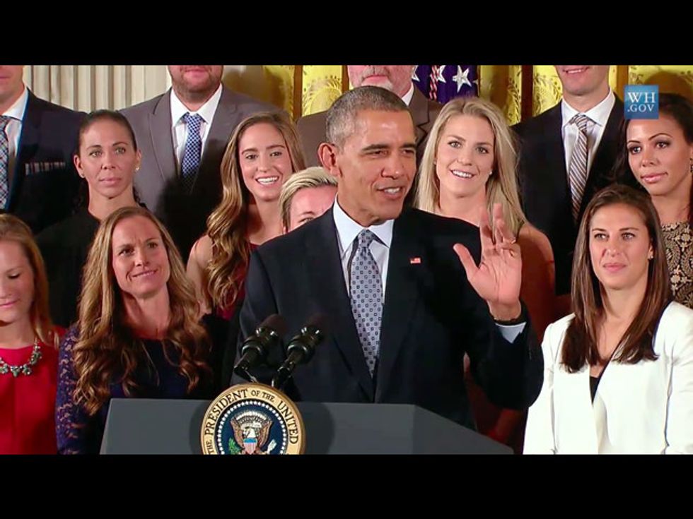 “This team taught all America’s children that ‘playing like a girl’ means you’re a badass,” Obama declared.