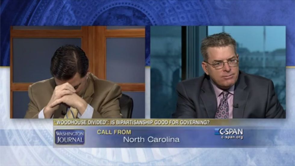 The two brothers and rival political operatives Brad Woodhouse (Democrat) and Dallas Woodhouse (Republican) got a surprise caller during an appearance Tuesday on C-SPAN: Their mother, who told them sternly to keep their arguments away from the dinner table this Christmas.