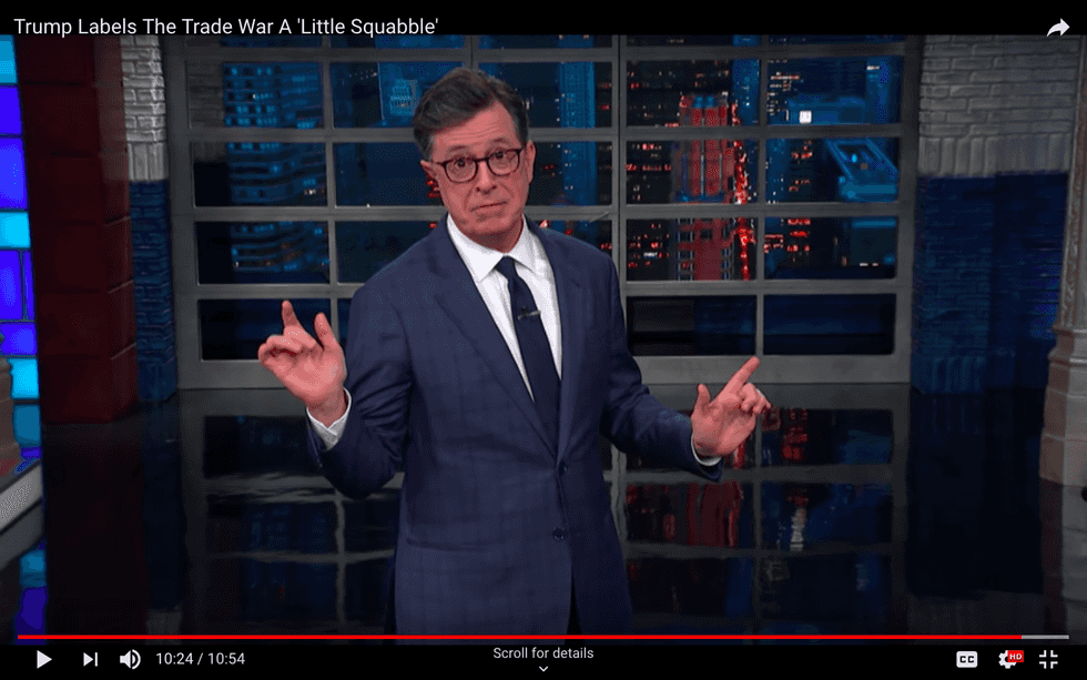 But Colbert himself is preoccupied with Trump’s trade war. What is it good for? He explains, and you’ll laugh.