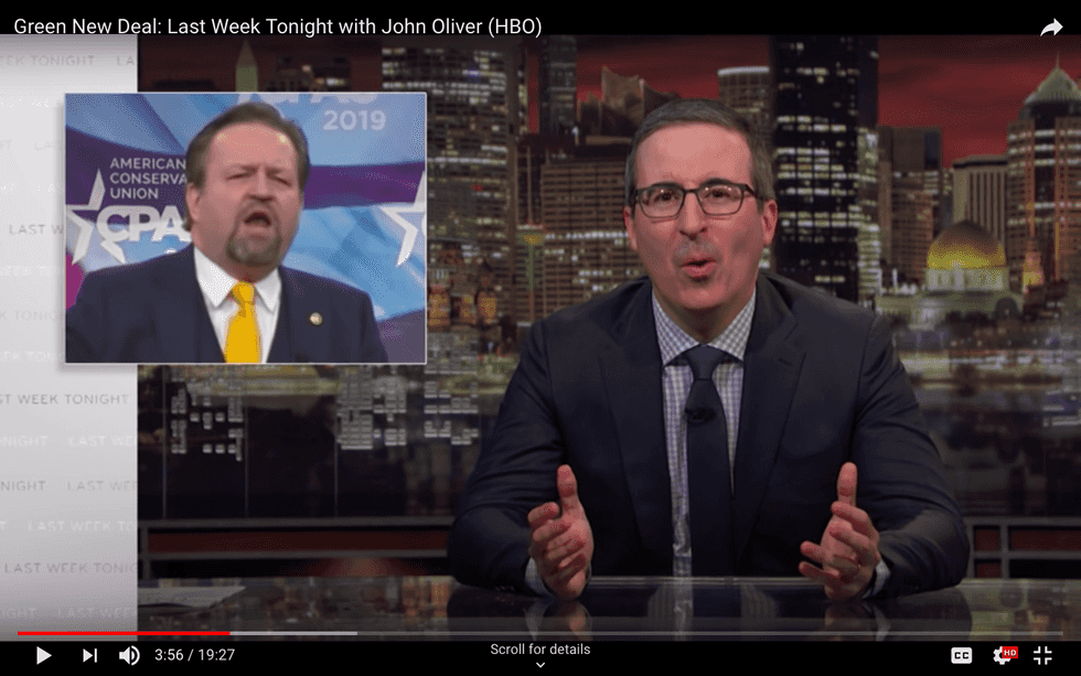 Of course Trump and his minions oppose the Green New Deal. Figures like former White House adviser Sebastian Gorka, who warned “They want to take away your hamburgers…this is what Stalin dreamt about.” Probably a good idea for Gorka, although as Oliver notes, the Green New Deal resolution contains no such language about hamburgers. Instead it’s about net zero carbon emissions, a clean-energy economy, and the millions of jobs that those objectives would create.