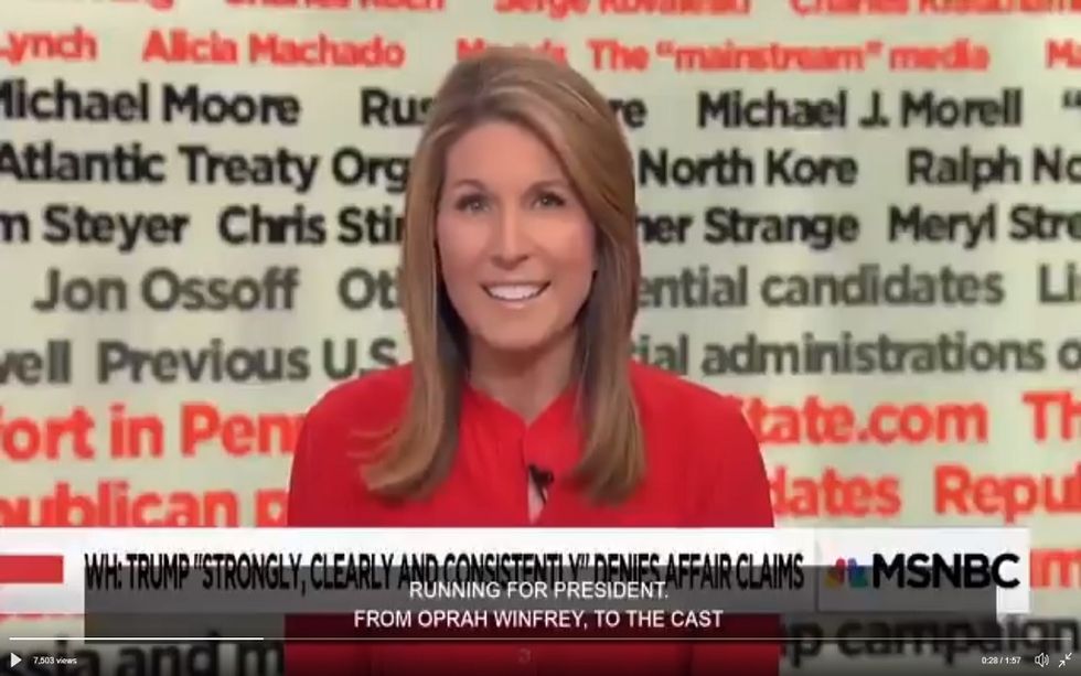 At least 400 names and organizations litter the mural of a President’s hatred, including all of the people 45 has insulted since announcing his candidacy in 2015. Musicians like Jay Z and Neil Young. Members of Trump’s own campaign team like Chris Christie. Pundits such as, well, Nicole Wallace.