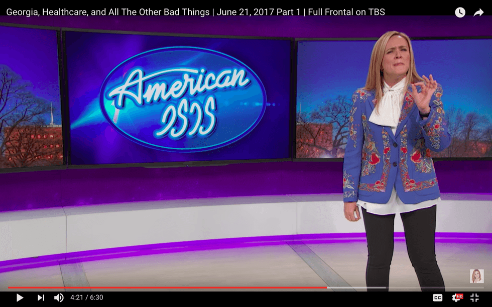 But as Samantha Bee explains on Full Frontal, there were also just enough Georgians in the Atlanta suburbs stupid enough to believe that the moderate Ossoff represents the “unhinged left” — you know, those thousands of bloodthirsty wackos who were “cheering on” the shooting of Rep. Steve Scalise (R-LA) on the baseball diamond last week. You say they don’t exist? Sean Hannity says they do! And so does “Principled PAC,” which aired an anti-Ossoff ad warning about those mad, murderous liberals.