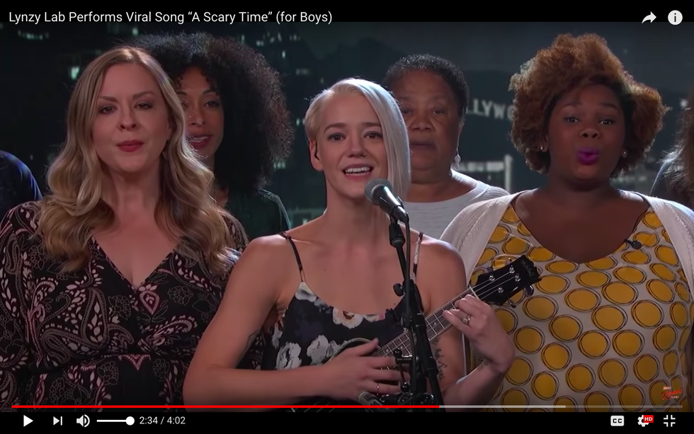 Jimmy Kimmel celebrated the International Day of the Girl with a very special guest. He welcomed Lynzy Lab, a college dance lecturer from Texas, whose satirical ditty “A Scary Time” just went super-viral on Twitter.