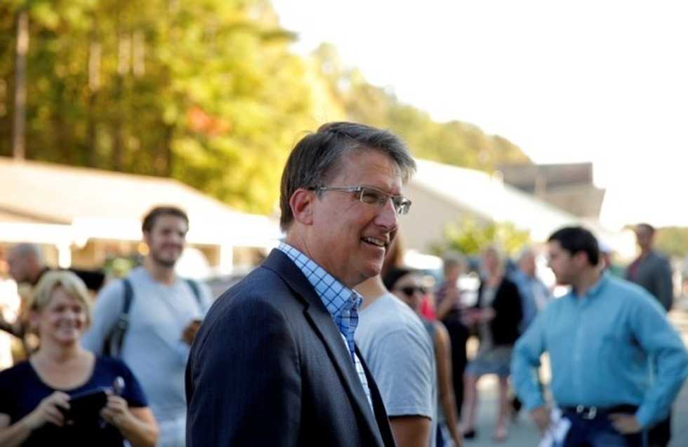 IMAGE: North Carolina Governor Pat McCrory speaks after viewing the damage caused in a firebomb attack on local offices of the North Carolina Republican Party in Hillsborough, North Carolina, October 17, 2016. REUTERS/Chris Keane
