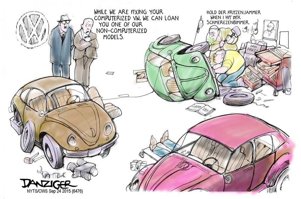 Volkswagen is now a colossal enterprise. Their new cars are pretty luxurious, and they’re clearly not people’s cars, certainly not the people I was back in the 70s. Companies change and customers change. Even so, I remember what VW was. The Bug was inhuman, noisy, cold in winter, hot in summer, stubborn in its refusal to improve, and unsafe. But the main difference between the clattery, rusty, underpowered, wheezing, cramped, and funny-looking Bugs I drove, and the Volkswagens of today is that the Bugs were honest. They didn’t promise anything they didn’t deliver. They didn’t try to fool you into thinking you were in a higher class than you were. You didn’t actually grow to love them, but you appreciated the steady urge they produced to graduate up to something better. And now, as we realize, that won’t be a Volkswagen.