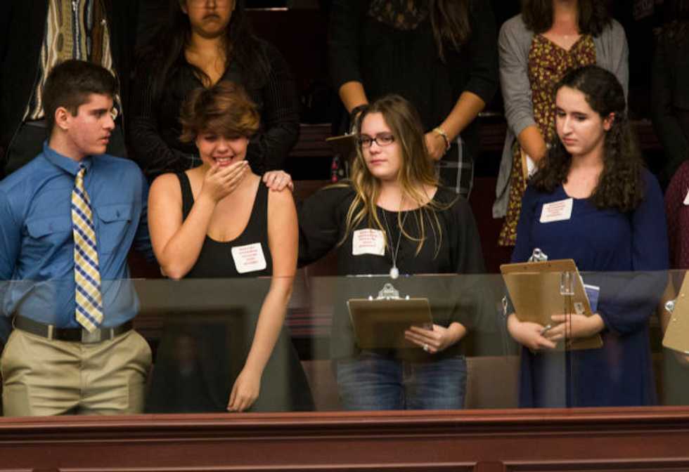 AP: Sheryl Acquarola, a 16 year-old junior from Marjory Stoneman Douglas High School, is overcome with emotion in the east gallery of the Florida House after the representatives voted not to hear the assault rifles ban bill. pic.twitter.com/qA28kFCEig