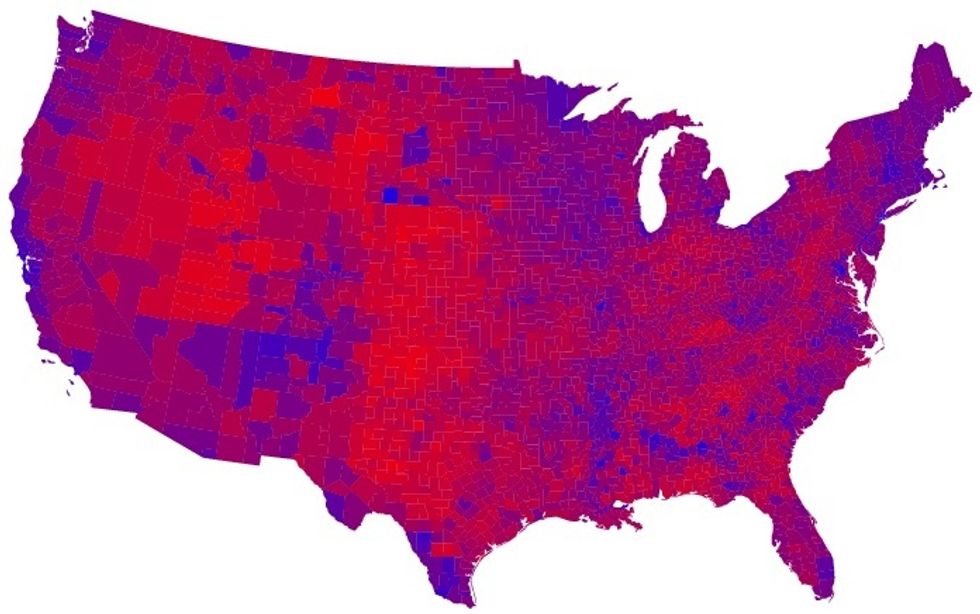 IMAGE: Election map by county that shows electoral tendency by shade of purple via Wikimedia Commons