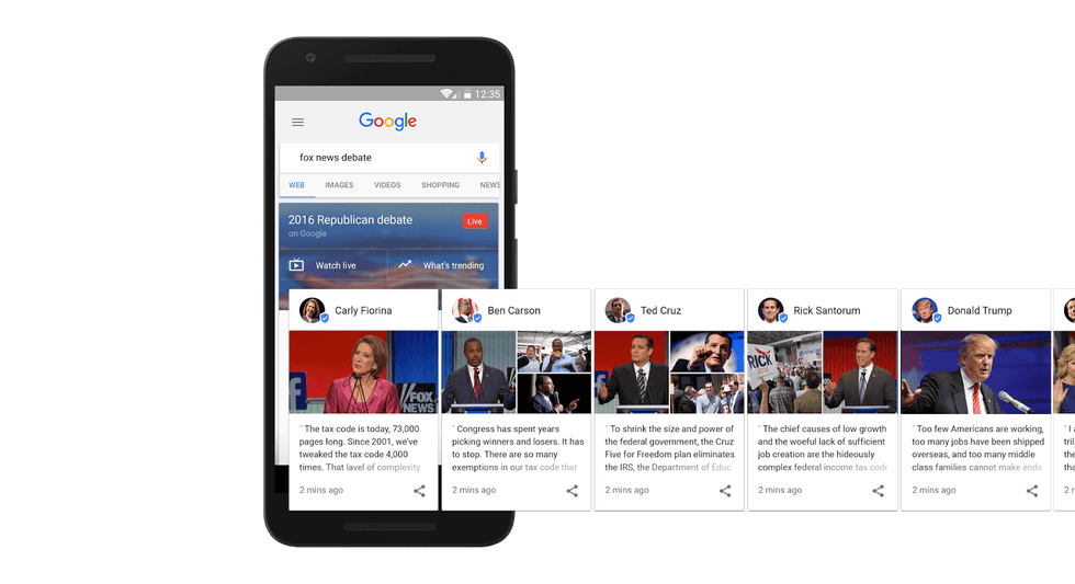 According to Google, searches related to politics rise 440 percent during the debates. So instead of furiously Googling what Carly Fiorina’s thoughts are on abortion or Jeb Bush’s record in Florida, Google is making it easier to find what you’re looking for, directly from the candidates.