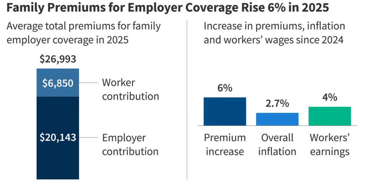 How much will that cost workers? According to the Kaiser Family Foundation annual survey of employer-based insurance, the average worker paid $6,850 for a family plan in 2025. A 6.5 percent increase in 2026 will sap paychecks by an average of $445. That’s nearly a one percent reduction in the median worker’s take-home pay.