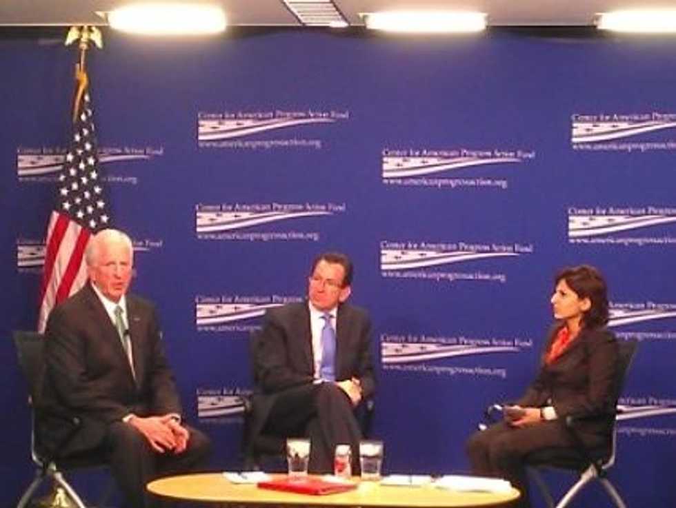 About a half-hour into a gun violence prevention conversation between Connecticut governor Dan Malloy and Center for American Progress president and CEO Neera Tanden Tuesday afternoon at CAP headquarters in Washington, D.C., Rep. Mike Thompson (D-CA), chair of the House Gun Violence Prevention Task Force, walked into the room and delivered the bad news for those who hadn’t heard: The assault weapons ban was dead.