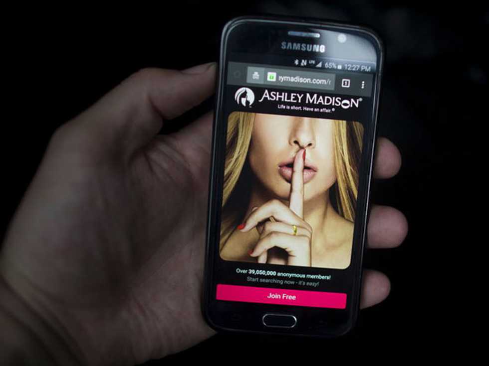 Photo: A photo illustration shows the Ashley Madison website displayed on a smartphone in Toronto, August 20, 2015. REUTERS/Mark Blinch