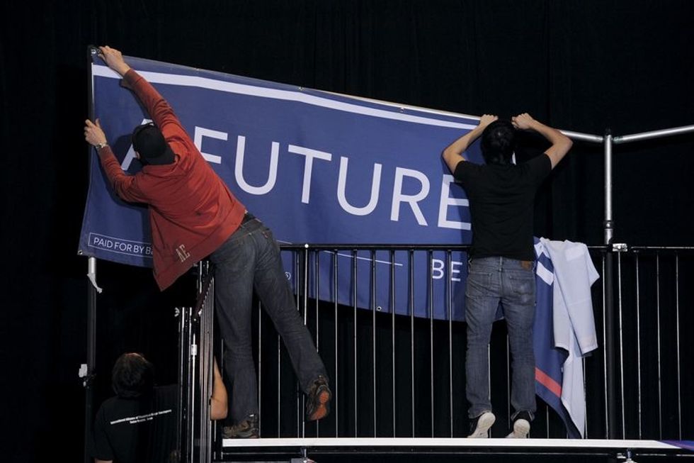 Photo: People dismantle the signage on stage after U.S. Democratic presidential candidate Bernie Sanders’ campaign rally in Dubuque, Iowa January 29, 2016. REUTERS/Mark Kauzlarich
