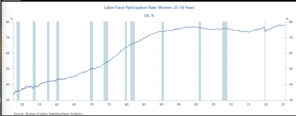 --The labor force participation rate for prime-age workers (25-54), a good proxy for labor demand, went up three-tenths to 84.1 percent and the prime-age rate for women rose to an all time high of 78.4 percent, from a data series that starts in the late 1940s!