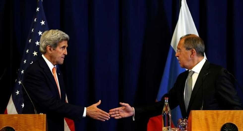 Photo: U.S. Secretary of State John Kerry and Russian Foreign Minister Sergei Lavrov (R) shake hands at the conclusion of their news conference following their meeting in Geneva, Switzerland where they discussed the crisis in Syria September 9, 2016. REUTERS/Kevin Lamarque