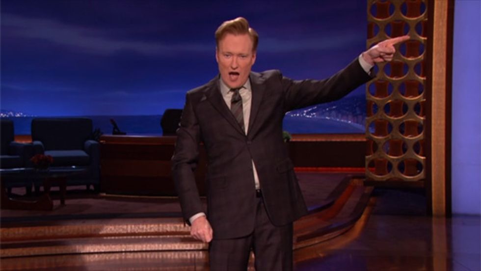 In his opening monologue on Tuesday, Conan O’Brien noted that Congress now has a record number of African-American lawmakers — but there’s a complication: “This is particularly awkward for the Tea Party congressmen who keep thinking they’re all the same guy.”