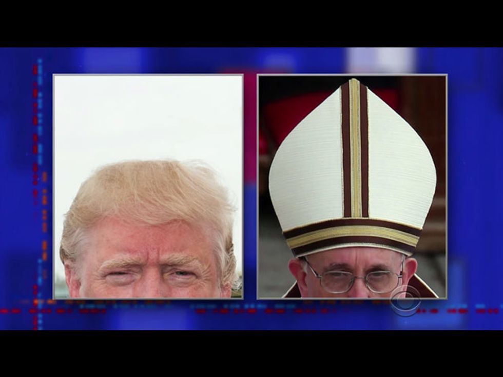 Stephen Colbert took on the bizarre campaign development of a political feud between Donald Trump and Pope Francis. “It’s like Jesus said: Blessed are the poor — unless they said something bad about me, then screw ’em.”