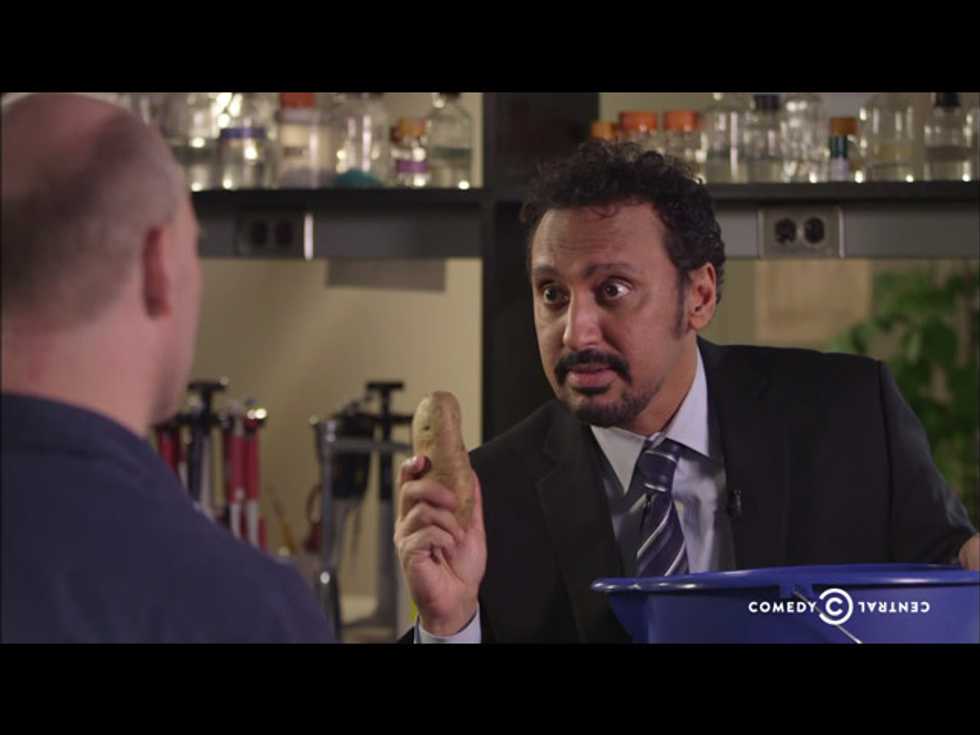 The Daily Show featured a special segment by Aasif Mandvi on the public fears about genetically modified foods. And as Aasif was shocked to find out, the big agriculture company he’s previously investigated is actually the good guy on this one. (Also, GMO potatoes are perfectly safe — unless you throw them at a person’s head.)
