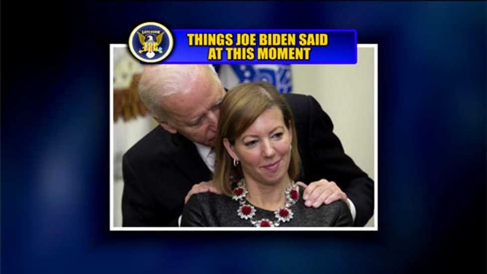 David Letterman ridiculed Vice President Joe Biden for this week’s big viral media moment when Biden had placed his hands on the shoulders of Stephanie Carter, wife of new Secretary of Defense Ash Carter, and whispered something in her ear.