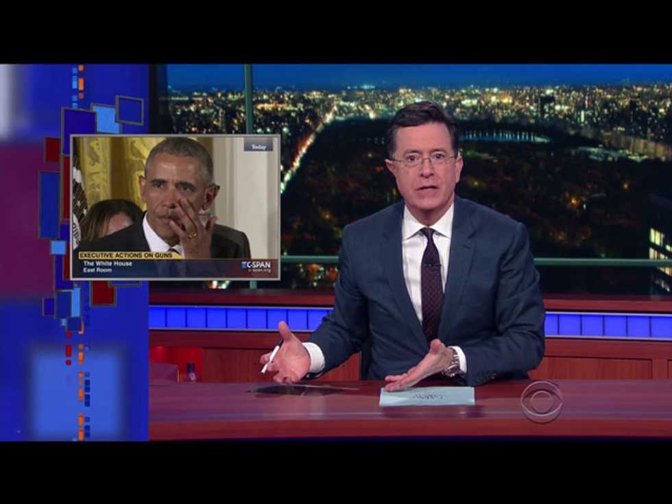 Stephen Colbert said that even if Obama’s newest gun policies are a minimal change at best, it’s important to see our leaders do something, and to show emotion about it against any desensitizing.